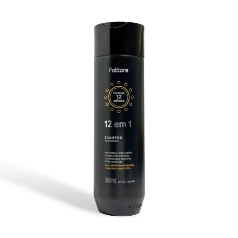 O Shampoo Reconstrutor Fattore 12 em 1 – 300ml foi formulado para proporcionar um tratamento completo desde a lavagem, atuando diretamente na recuperação de cabelos danificados, ressecados, quebradiços, elásticos ou quimicamente tratados. Sua fórmula avançada combina 12 ativos reconstrutores, que trabalham de forma sinérgica para fortalecer, hidratar, nutrir e revitalizar a fibra capilar.